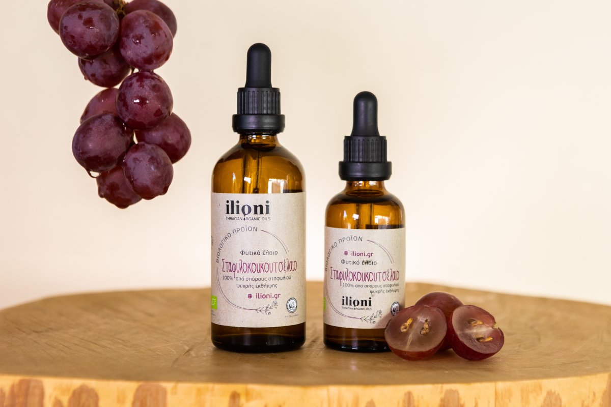 Uleiul organic din semințe de struguri Ilioni este un ulei 100% organic, presat la rece. Este produs din semințe de struguri cultivate organic, pe care le obținem din podgoriile grecești. Uleiul organic din semințe de struguri concentrează toate caracteristicile solului și climatice pe care le poate aduce un strugure organic grecesc. Este un produs excelent cu multiple proprietăți care contribuie la protejarea organismului uman.